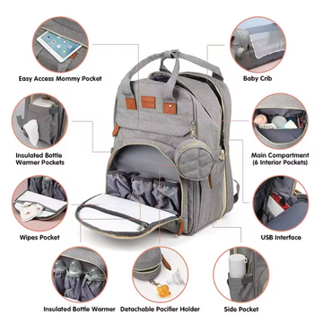 3-in-1 Diaper Bag Backpack with Foldable Baby Bed