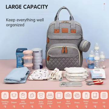 With its large capacity, this diaper bag lets you carry everything your baby needs—from bottles and diapers to blankets and toys—in one stylish backpack. Say goodbye to juggling multiple bags and hello to hands-free convenience and peace of mind wherever you go.